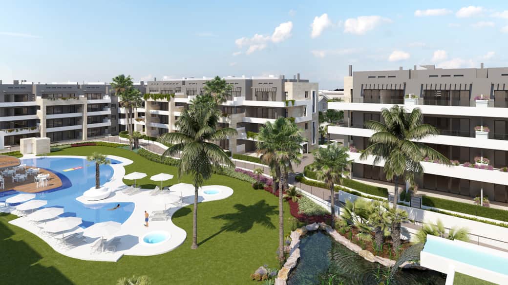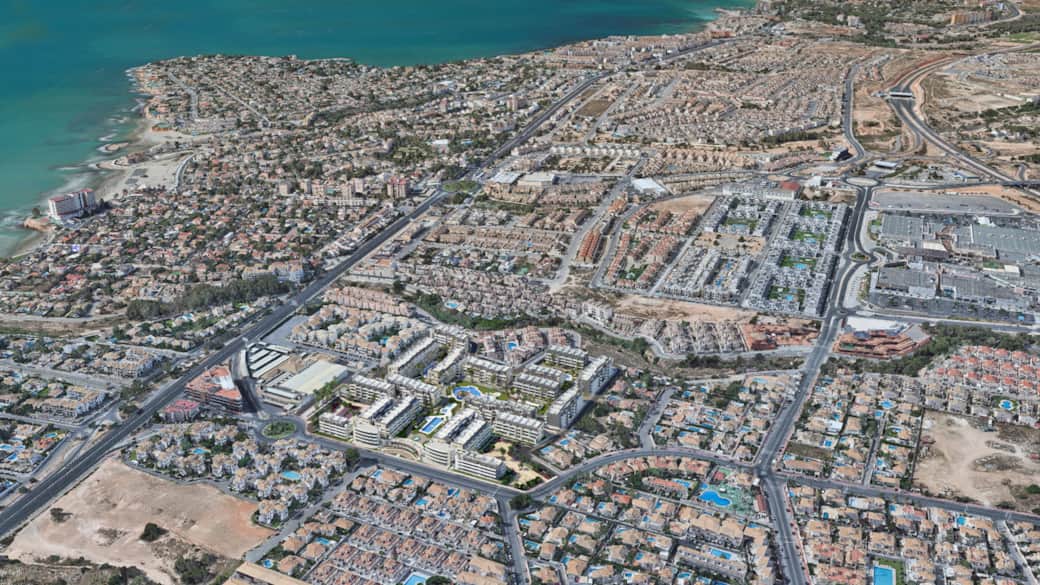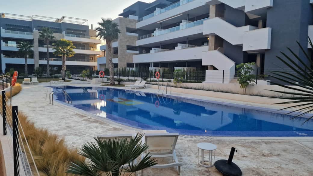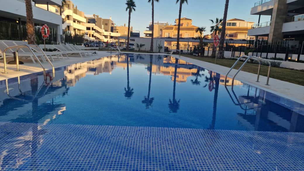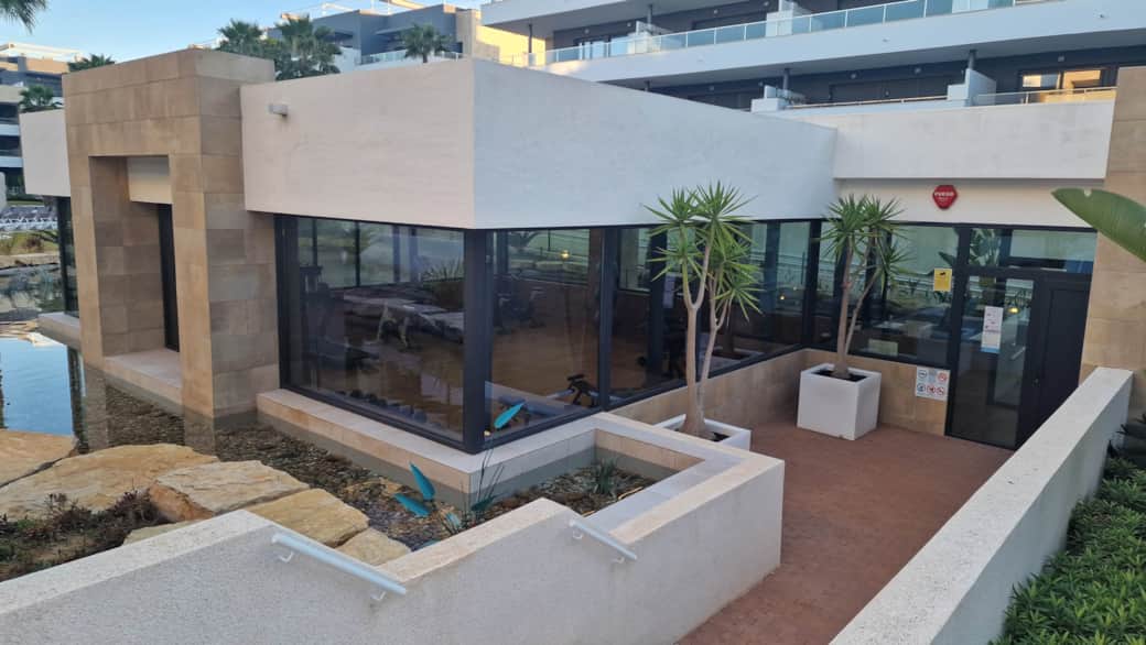 Här kan du bo året runt, då området bjuder på uppvärmda pooler (2 st) under vinterhalvåret, bastu, gym, garage samt ett flertal jacuzzis utomhus. Precis intill finns en Mercadona-butik och lördagsmarknaden i Playa Flamenca är runt hörnet. På gångavstånd tar du dig till havet och till Zenia Boulevard är det en 10-minuters promenad och den stora huvudleden N332 kommer du ut på nästan direkt efter du kört ut från garaget.